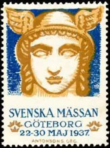 Schwedische Messe, Schweden, Größe/Zustand: 5x4 , guter Zustand, Original alte Reklamemarke die seinerzeit für die Werbung benutzt wurde