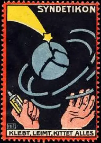 Klebt, leimt, kittet Alles. Rückseite mit Werbung, Größe/Zustand: 5x4 , guter Zustand, Original alte Reklamemarke die seinerzeit für die Werbung benutzt wurde