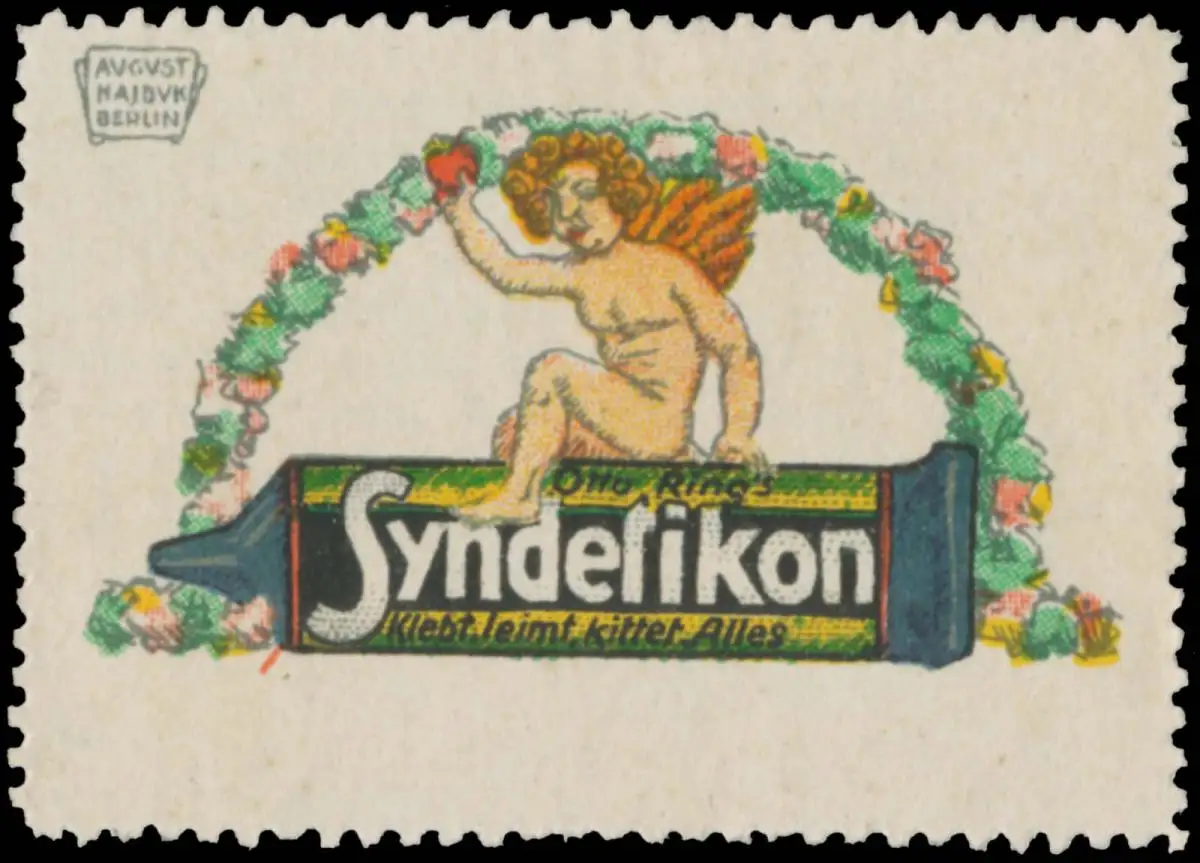 klebt, leimt, kittet alles, Engel, Größe/Zustand: 4x5 , guter Zustand, Original alte Reklamemarke die seinerzeit für die Werbung benutzt wurde