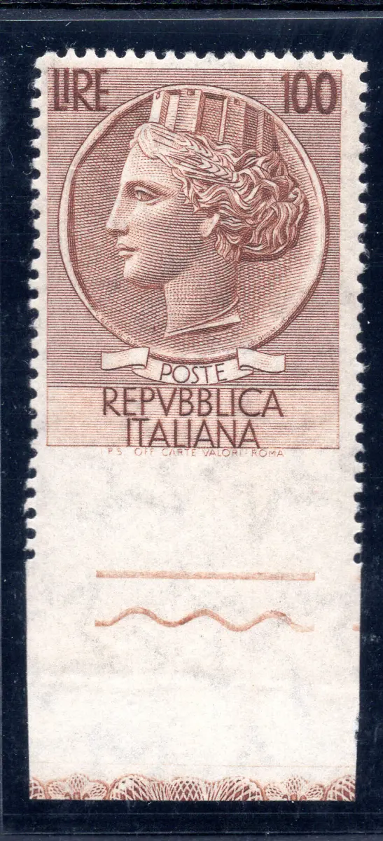 ** MNH - Syracusana Lire 100 n. 785/Ic schönes ungezähntes Exemplar unten b. von f. komplett - Ungewöhnlich - Kat. 600 Euro (817/19)
