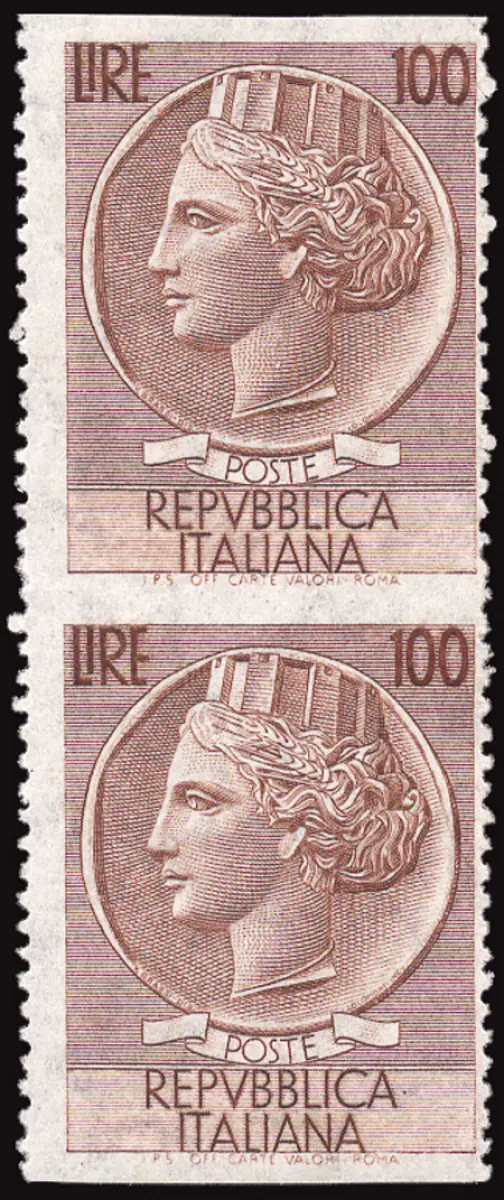 MNH - Vollgummi - Syrakus Lire 100 Sterne Nr. 785/Id vertikales Drehmoment nicht horizontal gezahnt - Selten - Kat. euro 650 Cod. 778/17