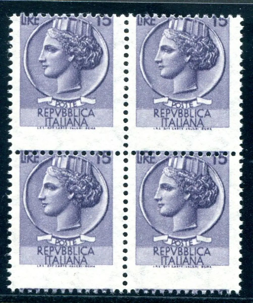 Syracusana Lire 15 (Arabica) Quartina Sorte Vollgummi - Syracusana Lire 15 Nr. 1071 (Arabica) Quartina mit stark nach unten verschobener horizontaler Verzahnung (Sass. spec. Nr. 674 Eb) - Uncommon Cod. 722/13