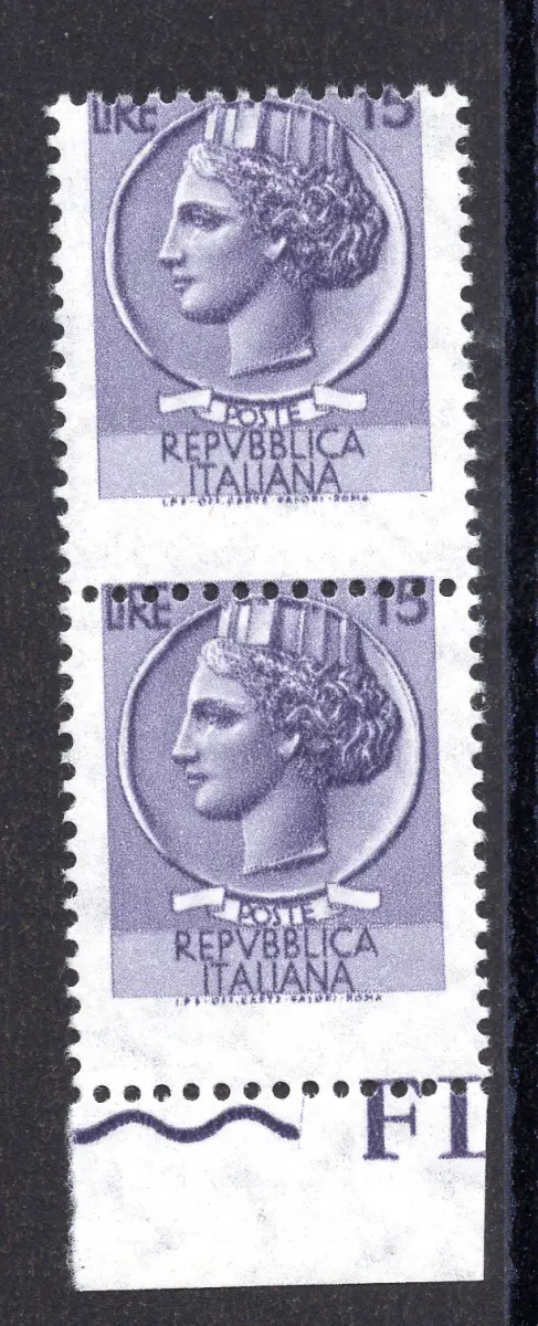 Syracusana Lire 15 (arabisch) verschobene Verzahnung Sorte Vollgummi - Syracusana Lire 15 Nr. 1071 (arabisch) vertikales Paar b. von f. mit stark nach unten verschobener horizontaler Verzahnung (Sass. spec. Nr. 674 Eb) - Uncommon Cod. 721/13