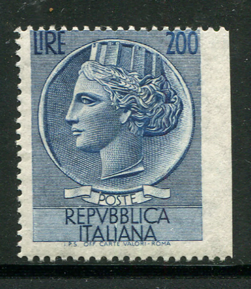 Syrakus Lire 200 Sterne II. ungezahnte Sorte rechts Vollgummi - Syrakus Lire 200 Sterne II. n. 816e rechts ungezähnt mit breitem Rand (mm. 4) - Kat. 600 Cod. 676/13