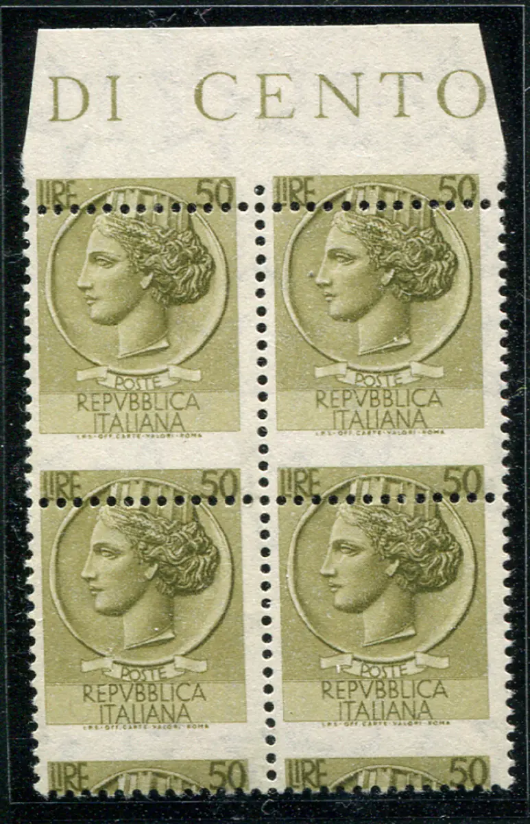 Syrakus Lire 50 Sterne II. Sorte 50 unten Vollgummi - Syrakus Lire 50 Nr. 773/I stelle II. Viertel b. von oben mit stark verschobener horizontaler Verzahnung Lire 50 nach unten und auch am Blattrand wiederholt - Schön und ungewöhnlich - Kat. 320+ Cod. 624/13