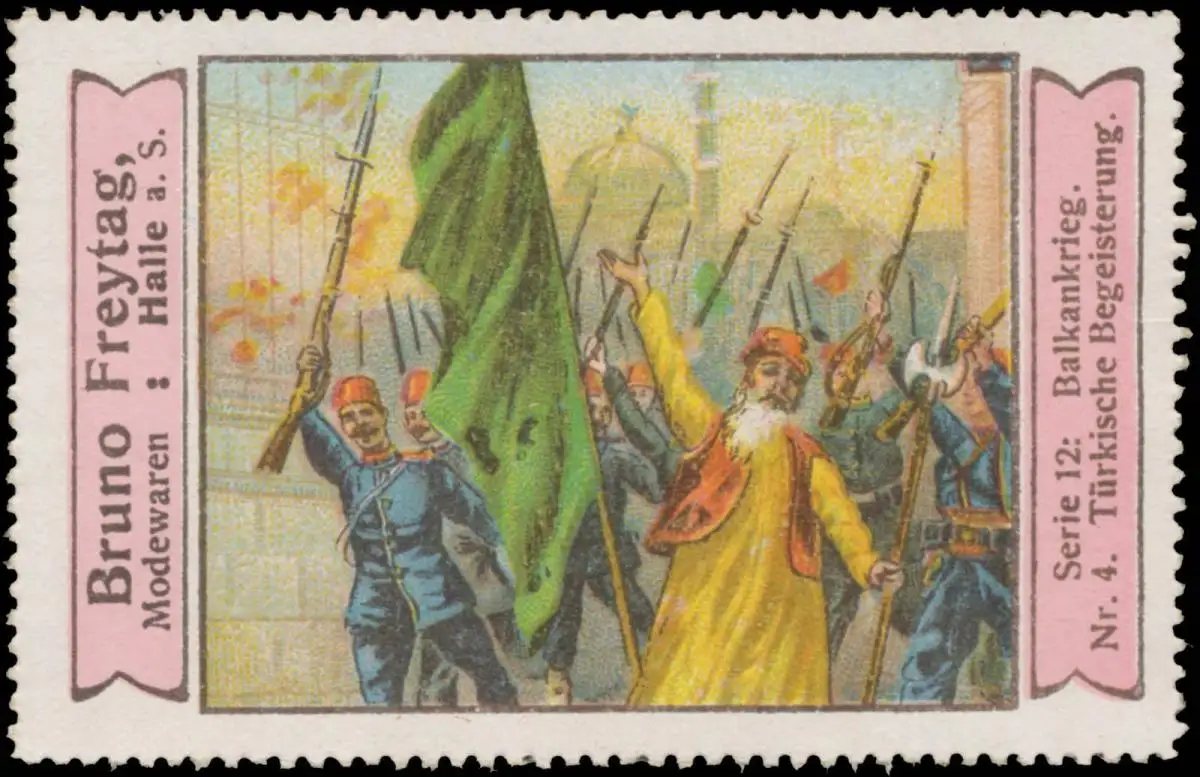 Serie 12: Balkankrieg, Nr. 4, Türkei, Größe/Zustand: 5x7 , guter Zustand, Original alte Reklamemarke die seinerzeit für die Werbung benutzt wurde