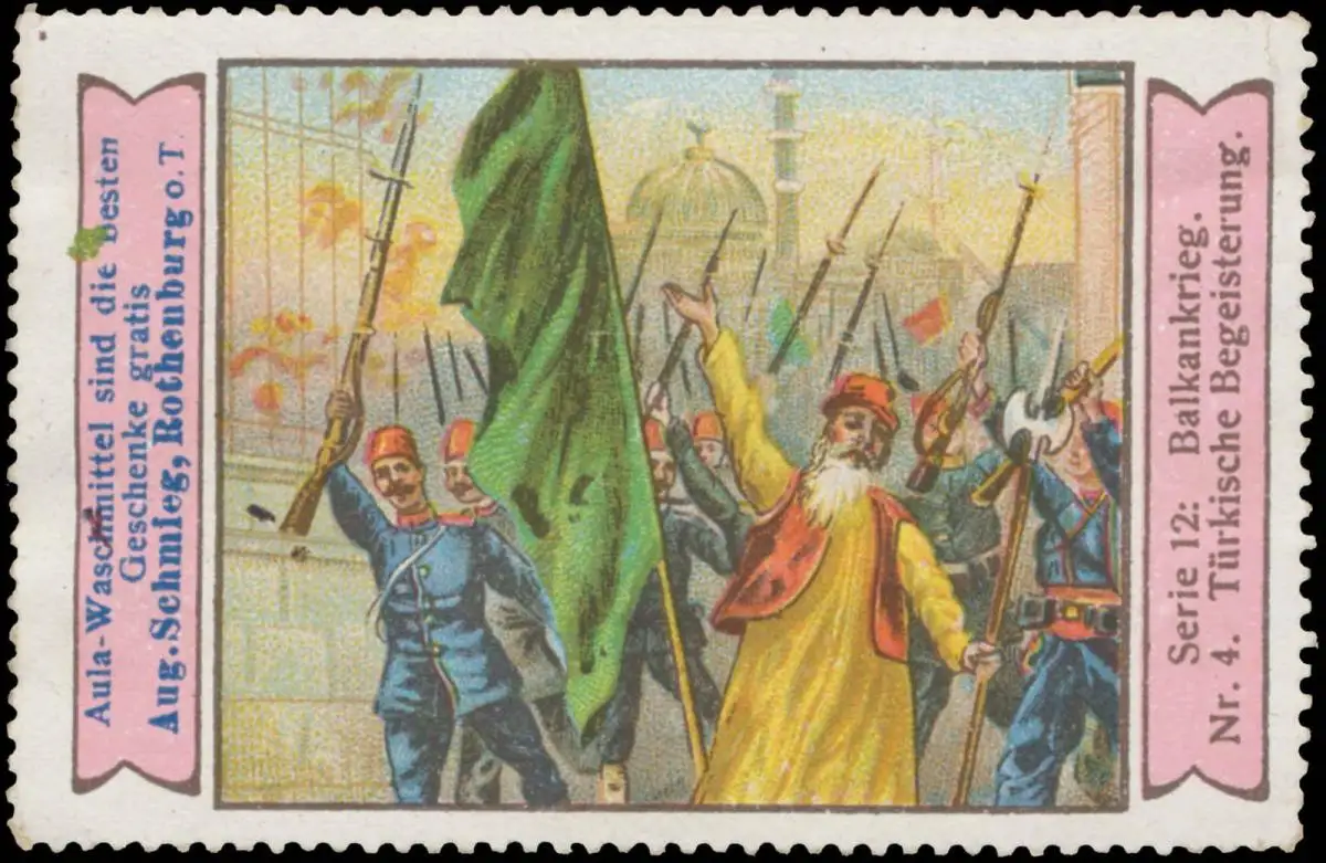 Balkankrieg Serie 12, Nr. 4, Aula - Waschmittel sind die besten Geschenke gratis., Größe/Zustand: 5x7 , Fehldruck, guter Zustand, Original alte Reklamemarke die seinerzeit für die Werbung benutzt wurde