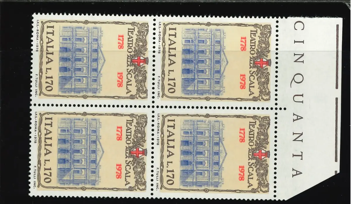 MNH - Vollgummi - TEATRO LA SCALA 170 L. DOPPELDRUCK VON ROSSO QUARTINA Cod. ITAV_0285