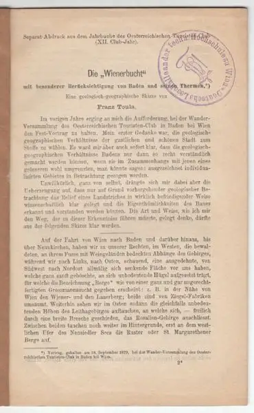 [Wien, Köhler 1881]. gr.-8°. 19 S. Brosch. d. Zt. Tit. gestemp. - (SA a. d. Jahrbuche des Oesterreichischen Touristen-Club)