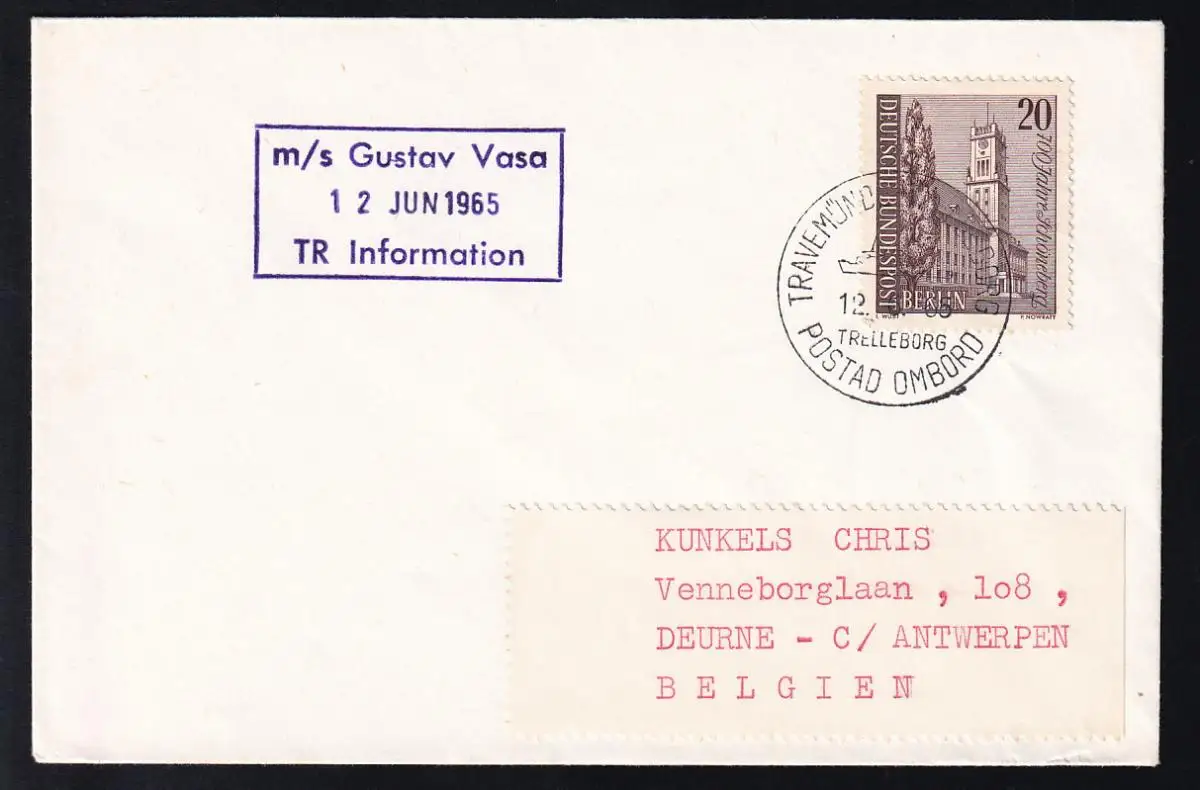 TRAVEMÜNDE-TRELLEBORG TRELLEBORG POSTAD OMBORD 12.6.65 + R3 m/s Gustav Vasa