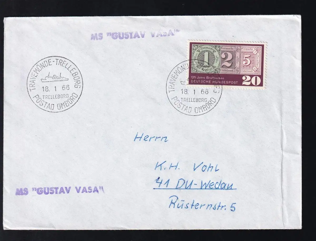 TRAVEMÜNDE-TRELLEBORG TRELLEBORG POSTAD OMBORD 18.1.66 + L1 MS "GUSTAV VASA"