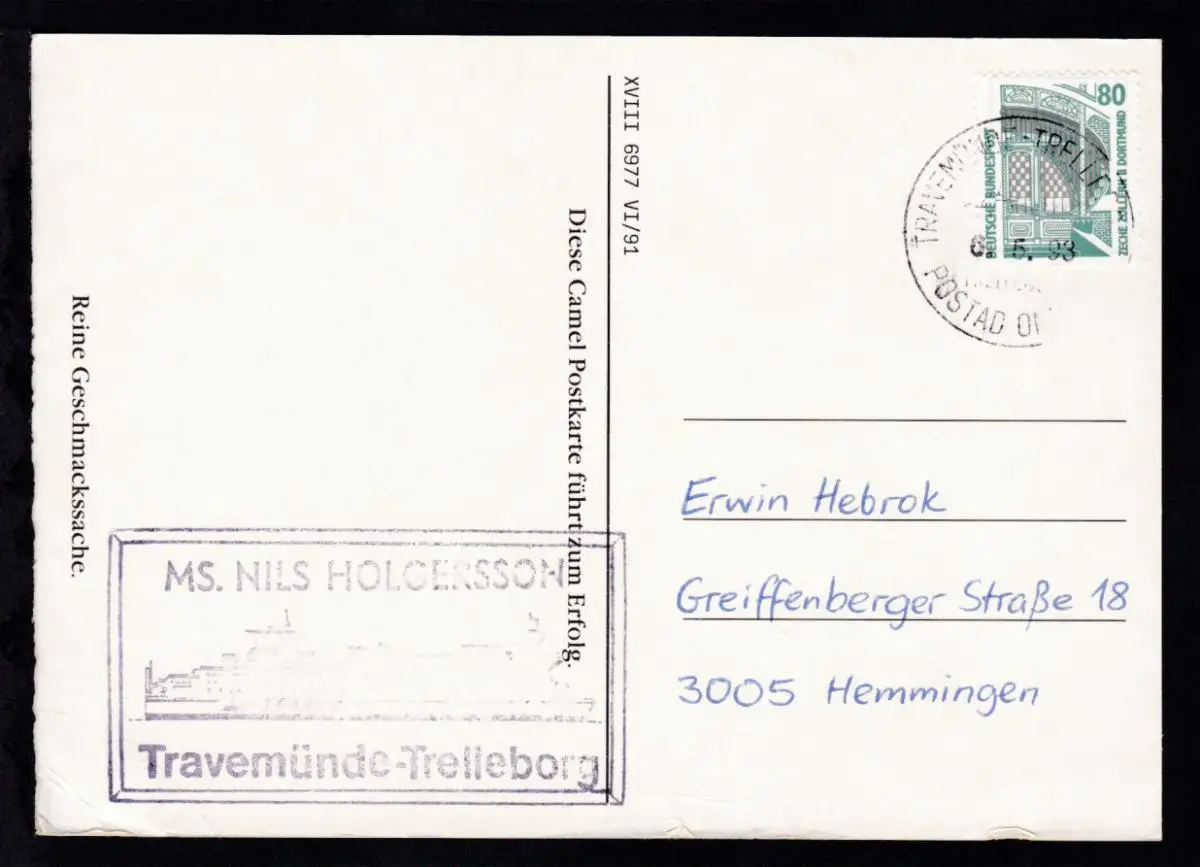 TRAVEMÜNDE-TRELLEBORG TRELLEBORG POSTAD OMBORD 6.5.93 + Cachet