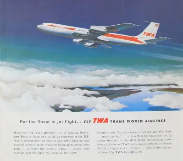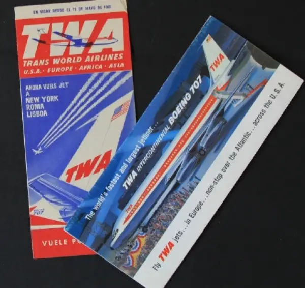 TWA Trans-World-Airlines Flugunterlagen und Boing 707-Prospekt 1960 (8773)