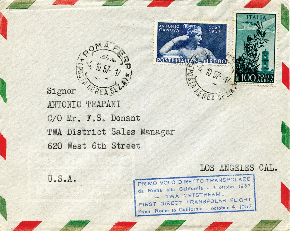 TWA Transpolarflug vom 4.10.57 - Aerogramm von Rom nach Los Angeles