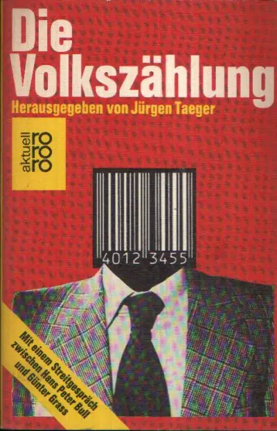 Die Volkszählung; Taeger Jürgen, Ausgeforscht und abgespeichert?; Volkszählung 1983. Der Fragebogen; Katalysator gegen den Orwell-Staat; Deutscher Bundestag. Debatte über das Volkszählungsgesetz vom Dezember 1981; Ein Streitgespräch; Presseerklärung des Bundesbeauftragten für den Datenschutz, Hans Peter Bull; Erklärung des Hamburgischen Datenschutzbeauftragten, Claus Henning Schapper; Das Volkszählungsgesetz 1983. eine Bestandsaufnahme; Gesetz über eine Volks-,Berufs- Wohnungs- und Arbeitsstättenzählung; Rechtliche Probleme der Volkszählung 1983; Und wir finden ihn doch.; Die erfaßte Persöhnlichkeit; Das Volk läßt sich nicht zählen; Der Staat braucht unsere Daten; Von der Fiktion der Unfehlbarkeit; Modellgestützte Planung in der Regierungspraxis, Mißbrauch ist auszuschließen; Informationsvorsprung der planenden Verwaltung; Planende Verwaltung und parlamentarische Kontrolle; Datenschlußverkauf; Personalinformationssystem; Politiker fragen-Bürger antworten nicht; Dann kann ich aus Gewissensgründen nicht zählen; Holland- Ein Land läßt sich nicht zählen; Statische Ämter der Länder; Landesbeauftragte für den Datenschutz; Volkszählungsboykott-Initiativen; Recht; Geschichte; Aurarbeitung der Geschichte; Datenschutz; Boykott; Volkszählung; Kontrolle