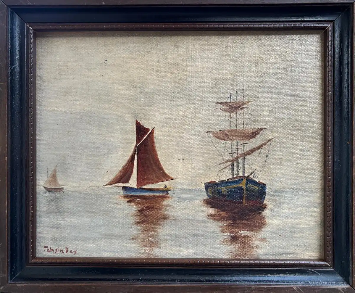 Tahsin Diyarbakiril Bey - Sailboats on the sea Turkish painter