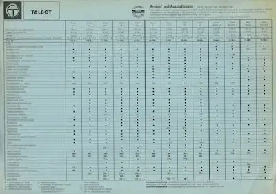 Talbot Preisliste 8.1981