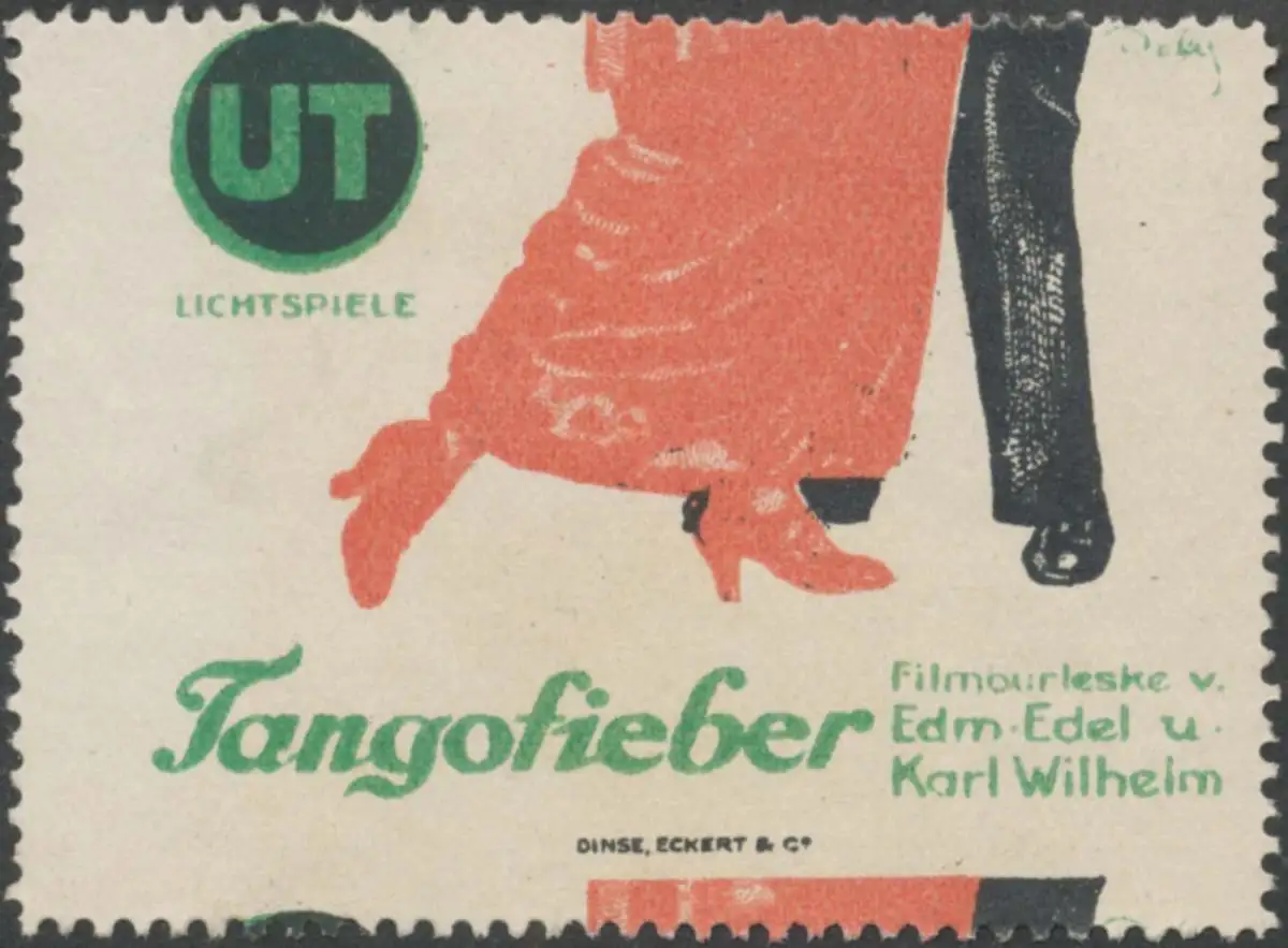 Kino, Filmoureske von Edm. Edel und Karl Wilhelm, Druck: Dinse, Eckert & Co., Größe/Zustand: 4x6 , Fehldruck, guter Zustand, Original alte Reklamemarke die seinerzeit für die Werbung benutzt wurde