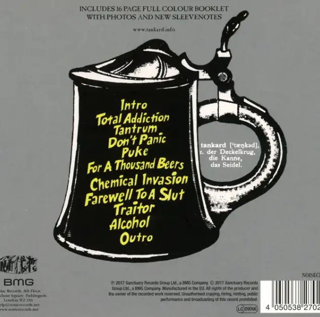 Noise Records veröffentlicht hochwertige Re-Releases der ersten drei Tankard -Alben. Vollständig remastered mit brandneuen Liner Notes und bisher unveröffentlichtem Bildmaterial.