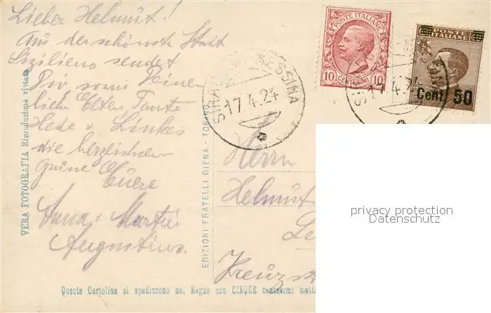 Taormina_Sizilien Etna Taormina Sizilien postalisch gelaufen 1924 Erhaltung siehe scans [PaolaD17] PaolPID1
