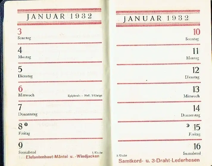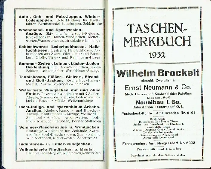 Taschenmerkbuch 1932.