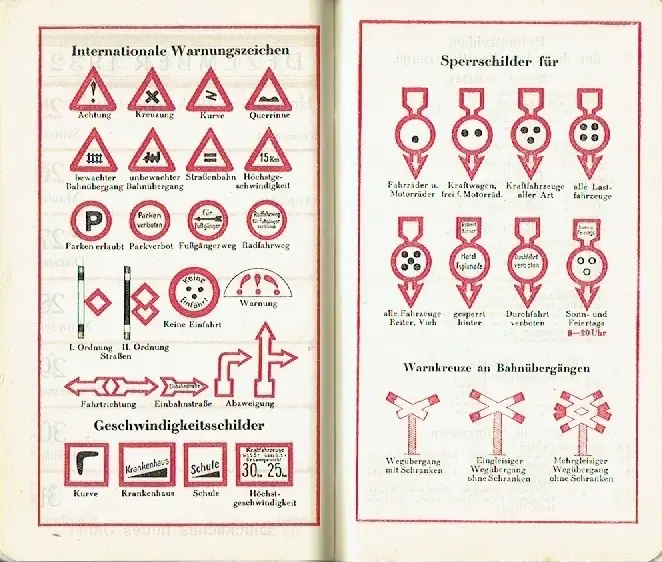 sehr guter Zustand, geringe Gebrauchs- und Alterungsspuren: die letzten Heftseiten sind leere Seiten mit Perforation für Notizen, davon ist eine halbe Seite sauber an der Perforation herausgetrennt - Rückseite innen teils etwas stockfleckig - Seiten sauber und ordentlich - Einband etwas fleckig, Produkte - Größen-Verzeichnis für Hosen, Sakkos, Joppen und Mäntel - Normalmaß-Verzeichnis - Verbandskonditionen (im Reichsverband für Herren- und Knabenbekleidung) - Notizen und Wissenswertes - Kalender und Kalendarium - Verkehrszeichen: Internationale Warnungszeichen, Geschwindigkeitsschilder und Sperrschilder, Warnkreuze an Bahnübergängen - Heimatzeichen deutscher Kraftfahrzeuge - Feiertage, Festtage, Buß- und Bettage - Zinsdivisoren-Tabelle - Schmelzpunkte verschiedener Körper - Maße und Gewichte, Elektrische Maßeinheiten, Weltzeituhr - Einwohnerzahl der größten Städte Deutschlands - Sonnen-Auf- und -Untergang, immerwährender Kalender - Gebühren für Postsendungen, Kunstleder, ca. 9 x 15, 78 Seiten