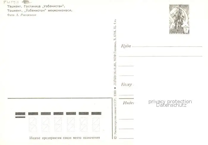 Taschkent_Usbekistan Hotel Taschkent_Usbekistan postalisch nicht gelaufen nach 1965 Erhaltung siehe scans [IrynaD87] Iryn PID