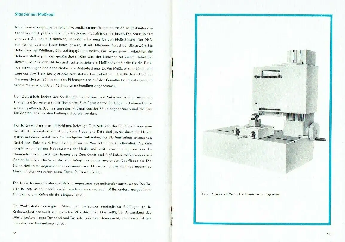 sehr guter Zustand, geringe Gebrauchs- und Alterungsspuren: auf dem Deckel altes Logo mit neuem überklebt, Prospekt für das Gerät mit Beschreibung, Anwendungsmöglichkeiten, Aufbau und technischen Daten, Softcover, ca. 15 x 21, 22 Seiten mit 14 Bildern