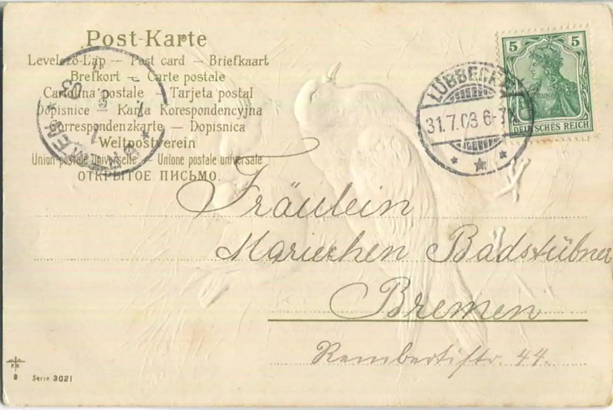 Tauben - Prägedruck (G12570) gel. 1903