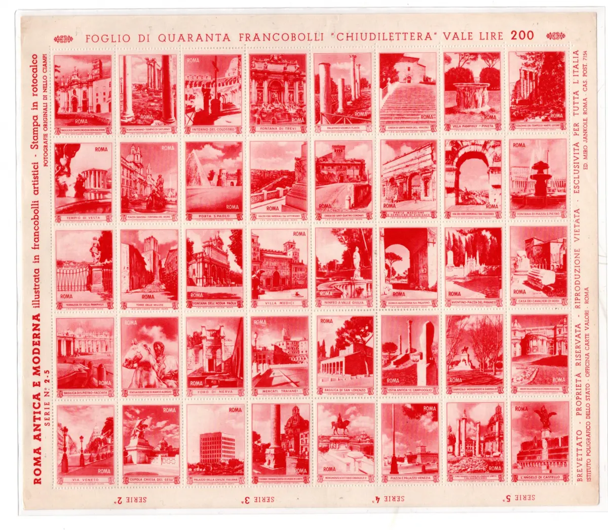 MNH - Vollgummi - - Technische Prüfungen der alten und modernen Rom Staatspolygraphie - Das Blatt mit 40 verschiedenen Ansichten in roter Farbe (Einheitskatalog Test Nr. C1 / C40) - neu perfekt mit Vollgummi - Selten Cod. 2732 / WEB