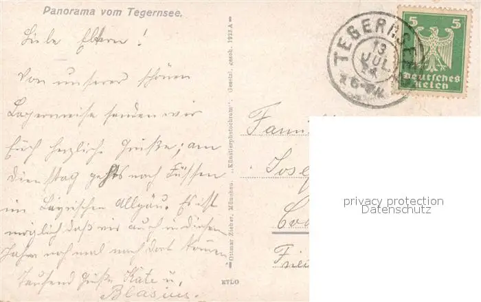 Tegernsee Panoramakarte Tegernsee postalisch gelaufen 1921 Erhaltung siehe scans [WerneD78] WernPID7