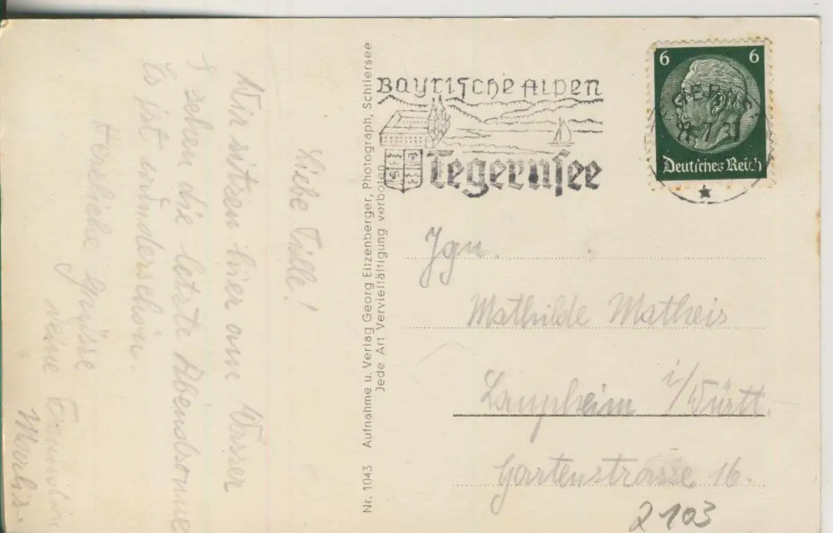 Tegernsee v. 1937 Teil-Stadt-Ansicht (AK2103)