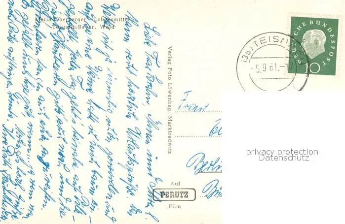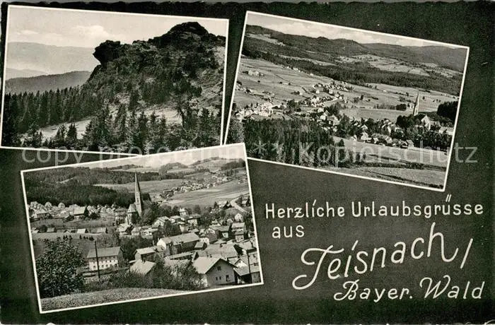 Teisnach Panorama Ortsansicht mit Kirche Teisnach postalisch gelaufen 1961 Erhaltung siehe scans [WerneD78] WernPID7