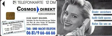 Telefonkarte S 62 07.92 Cosmos Direkt Versicherung, DD 2208 Computer Nr.