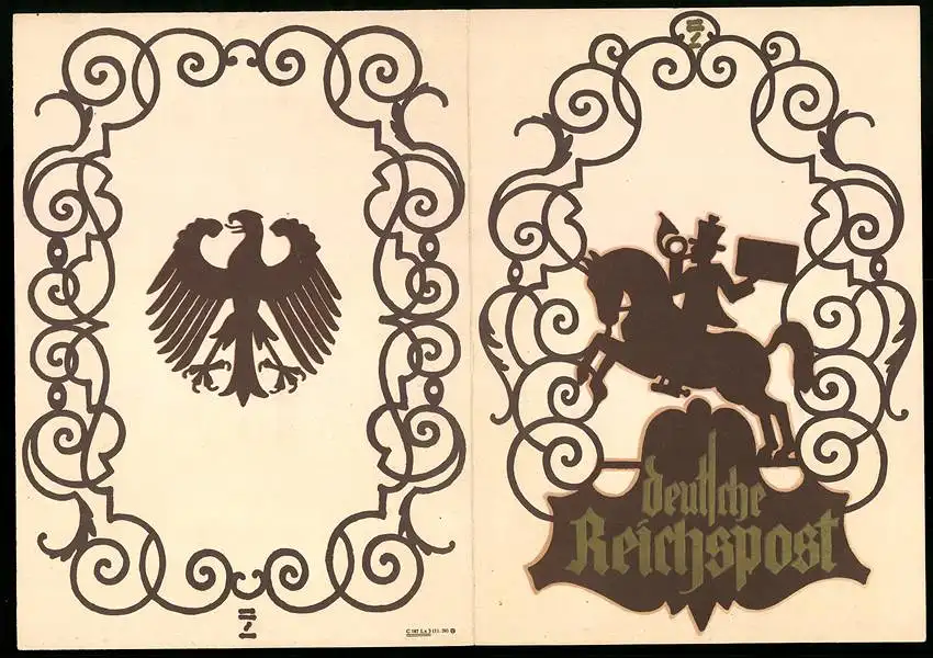 Telegramm Deutsche Reichspost, 1930, Adler und Postillon als Reiter im Barockstil auf Aussenseiten