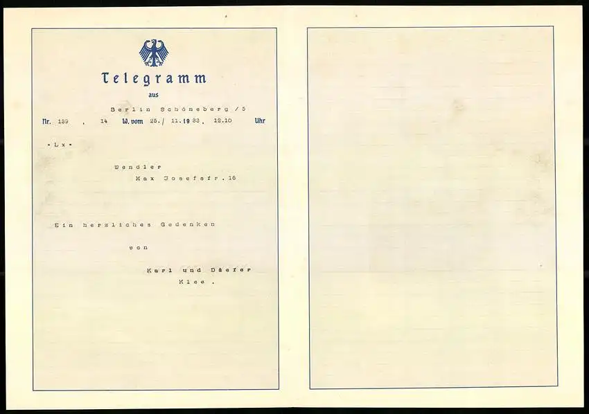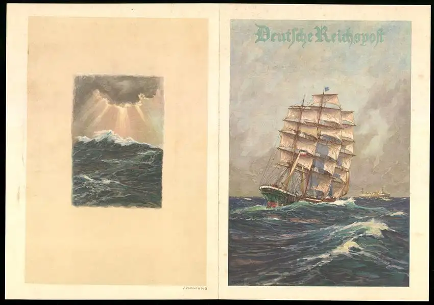 Telegramm Deutsche Reichspost, 1933, Segelschiff auf stürmischer See und Sonnenstrahlen, Entwurf: Hans Bohrdt