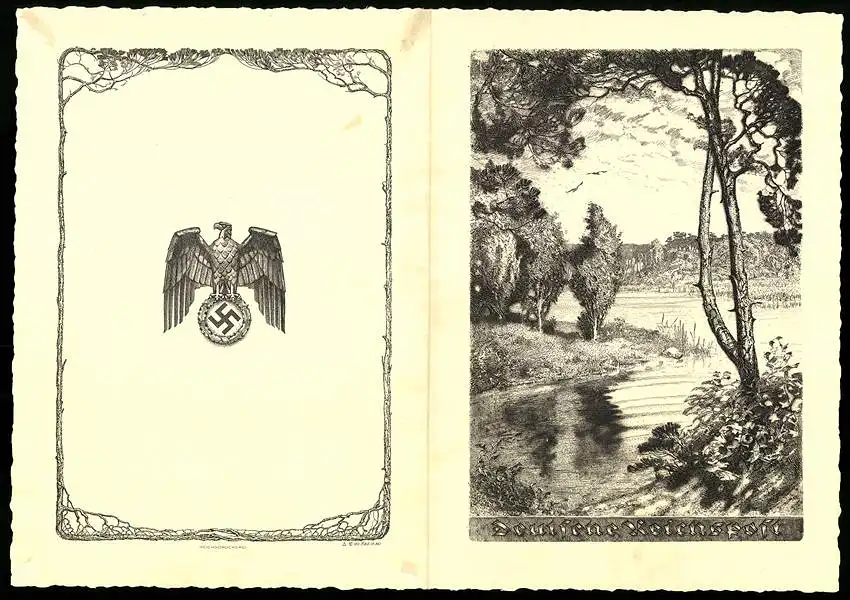 Telegramm Deutsche Reichspost, 1939, Adler und , Landschaftsillustration auf Aussenseiten