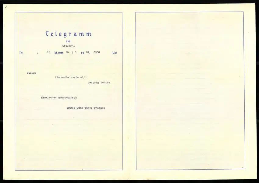 Telegramm Deutsche Reichspost, 1940, Segelschiff auf stürmischer See und Sonnenstrahlen durch Wolkendecke