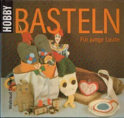 Basteln für junge Leute; Tenner, Waltraud; Fingerpuppen; Puppenhaus; Sitzecke fürs Puppenhaus; Garten; Marionette; Stabpuppe; Strumpfkrokodil; Geflochtene Krake; Hampelmoritz; Badetasche; Minibilder; Glückwunschkarten; Osterstrauß; Stecknadelkissen; Lesezeichen; Topflappen; Buchhülle; Eisenbahn; Segelschiff; Streichholzschachteln; Lederreste; Butterdose; Kalenderkranz; Weihnachtsfiguren; Aquarium; Teddybär; Kuschekschlange; Badmatte; Badepantoffel; Strickliesel; Mufftaschen; Nähoma; Nähwichtel, Kugellampe; Perlenschmuck; Lampenschirm; Halbkugel: Bastelbuch, Tipps; Vorschläge