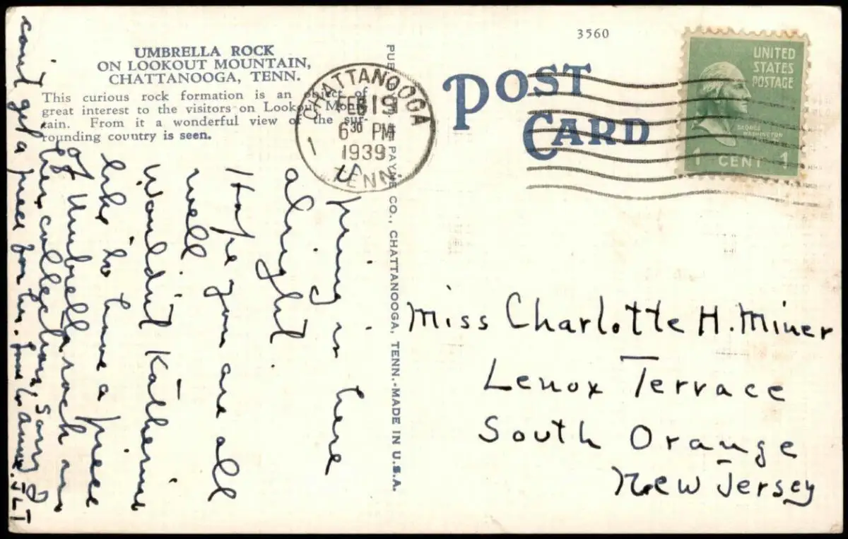 Tennessee Allgemein UMBRELLA ROCK ON LOOKOUT MOUNTAIN, CHATTANOOGA 1939