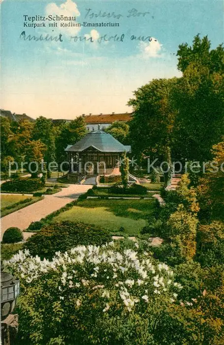 Teplitz-Schoenau_Teplice Kurpark Radium Emanatorium postalisch gelaufen 1921-1965 Erhaltung siehe scans [FriedD77] Frierer