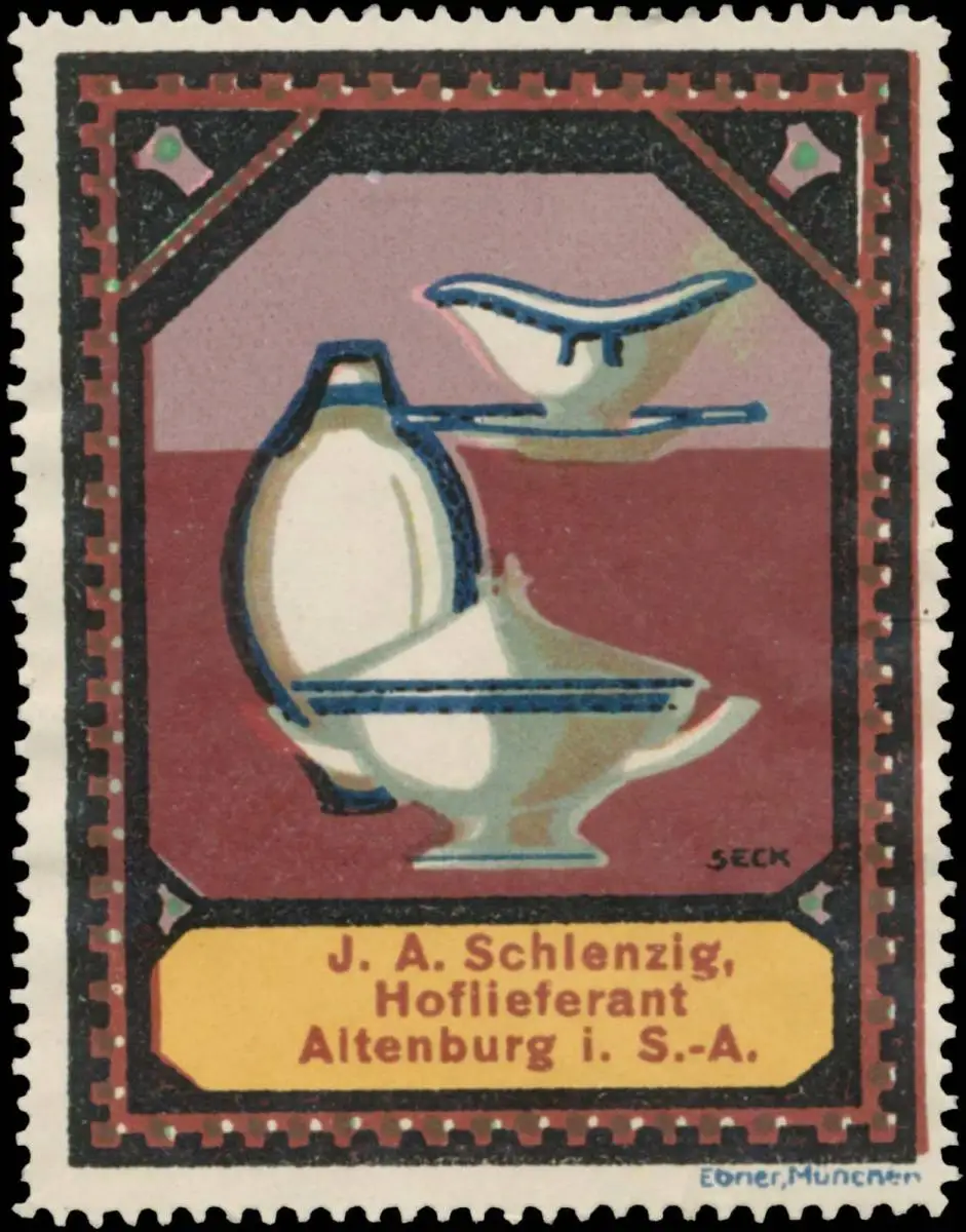 Glas, Porzellan und Steingut, Haushaltswaren, Hoflieferant, Druck: Ebner, München, Größe/Zustand: 6x5 , guter Zustand, Original alte Reklamemarke die seinerzeit für die Werbung benutzt wurde