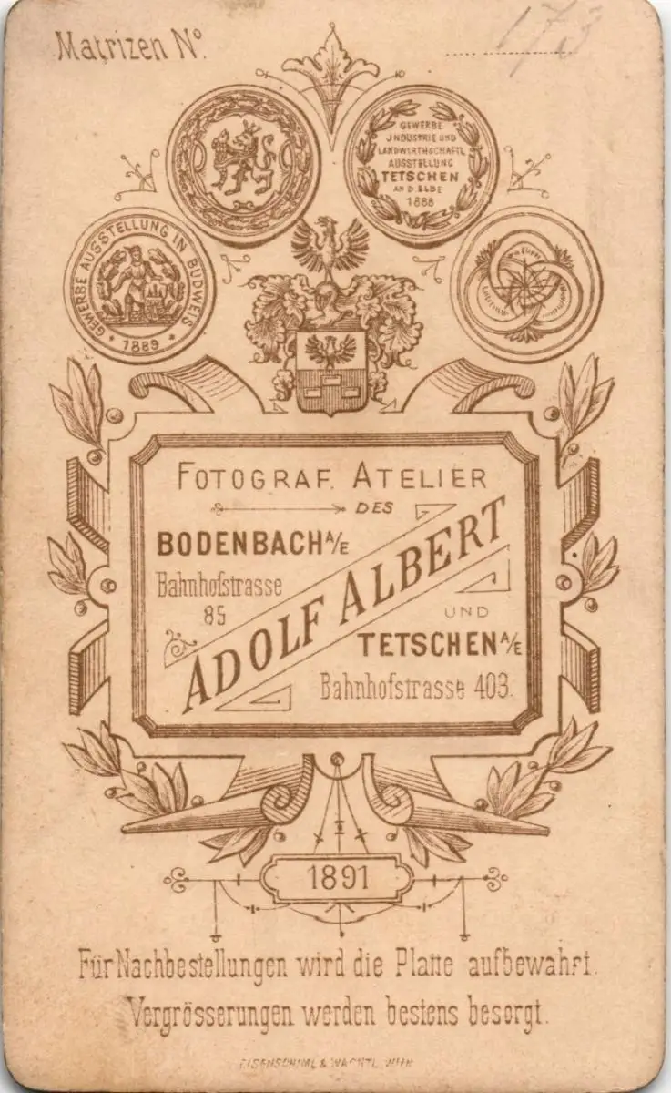 Tetschen-Bodenbach Decín Atelier-Photo Adolf Albert (Tetschen Elbe) 1900 CdV