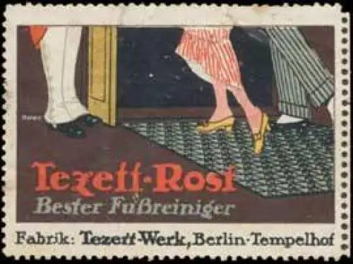 Fussabtreter, Größe/Zustand: 4x6 , fleckig, Original alte Reklamemarke die seinerzeit für die Werbung benutzt wurde