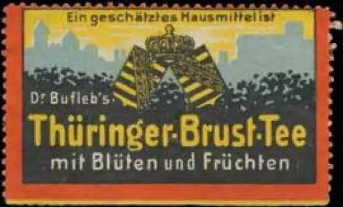 Dr. Buflebs Thüringer Brust Tee mit Blüten und Früchten, Größe/Zustand: 3x5 , guter Zustand, Original alte Reklamemarke die seinerzeit für die Werbung benutzt wurde