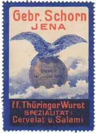 FF. Thüringer Wurst Spezialität: Cervelat und Salami, Größe/Zustand: 6x4 , guter Zustand, Original alte Reklamemarke die seinerzeit für die Werbung benutzt wurde