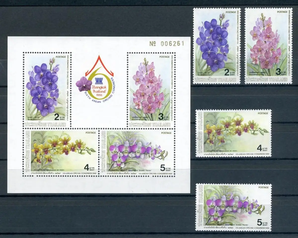 Thailand 1179-1182 + Block 17 postfrisch Orchideen, Blumen #JK324