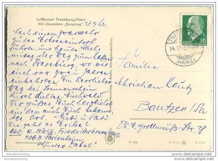Thale-Treseburg - HO-Gaststätte Burgstieg - Verlag E. Rhien Wernigerode (E37147) gel. 1962