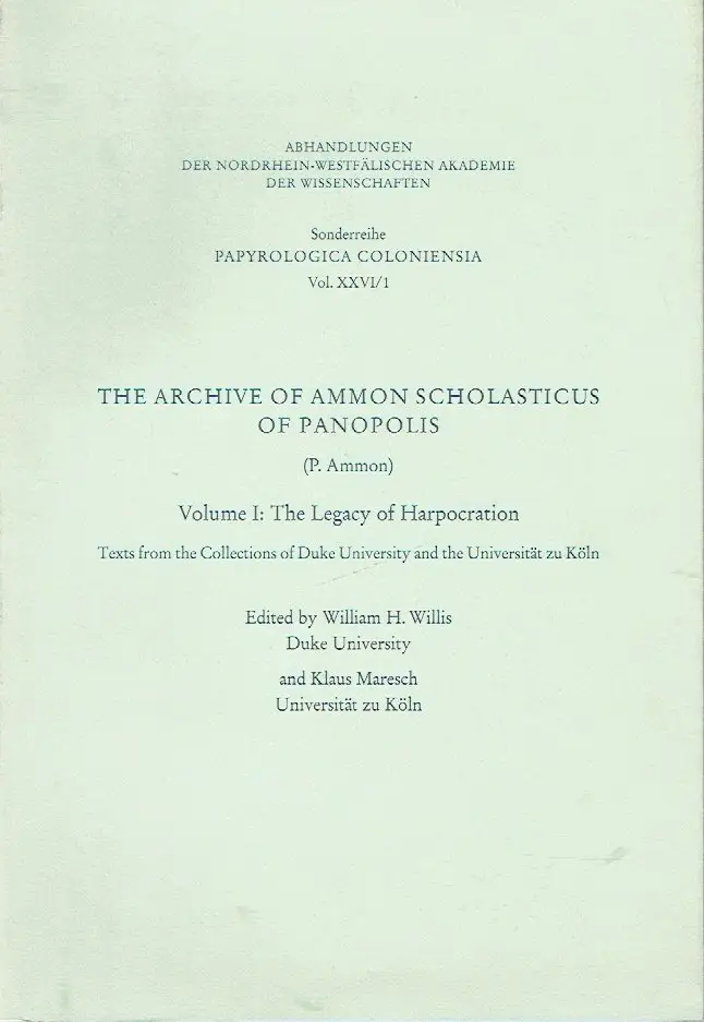 The Archive of Ammon Scholasticus of Panopolis Volume 1: The Legacy of Harpocration, Texts from the Collections of Duke University and the Universität zu Köln.