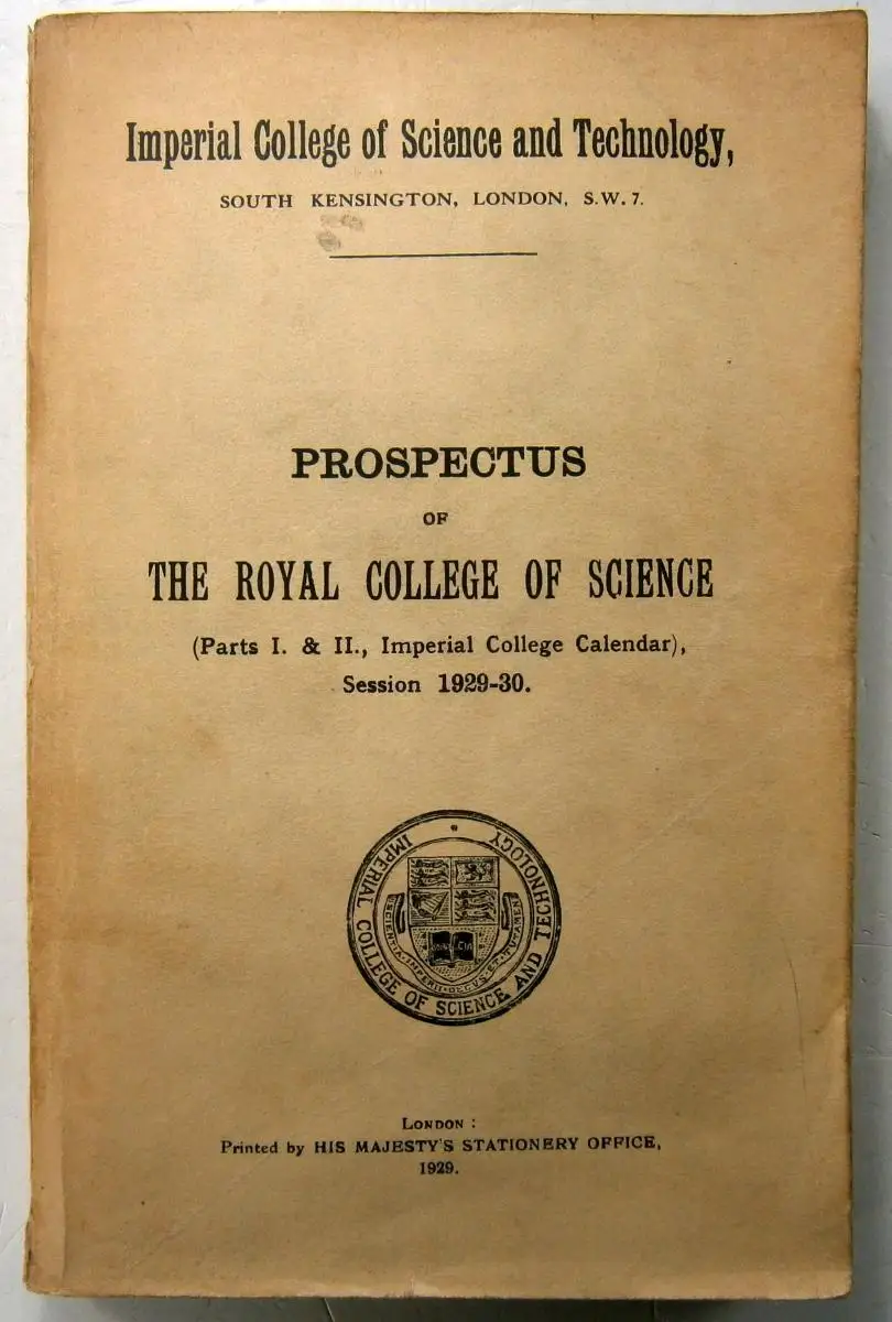 The Imperial College of Science and Technology, London: Calendar for Session 1929-30. Part I + II.